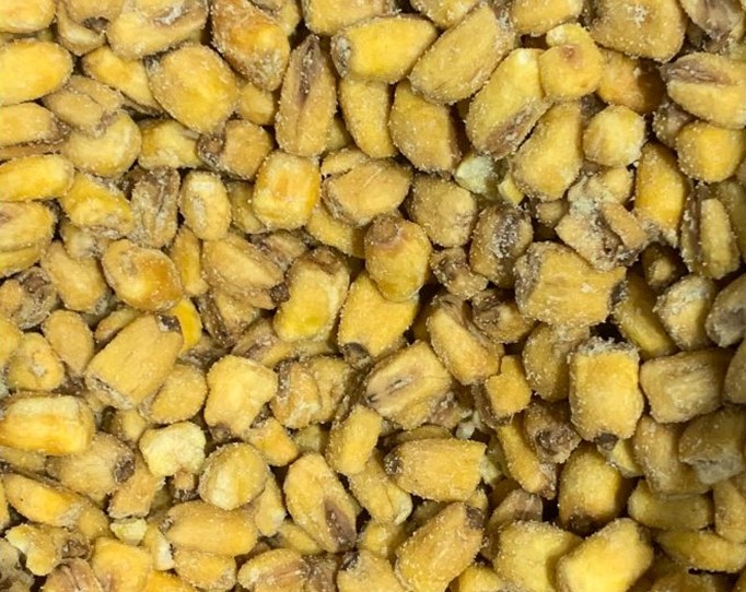 O milho torrado sabor mostarda e mel é um snack crocante e saboroso, que combina o crocante natural do milho com o equilíbrio agridoce do tempero. Durante o processo de torrefação, os grãos de milho perdem a umidade e ganham uma textura mais firme e crocante. A cobertura com o sabor de mostarda e mel adiciona um toque levemente picante e adocicado, tornando-o uma opção irresistível para lanches.