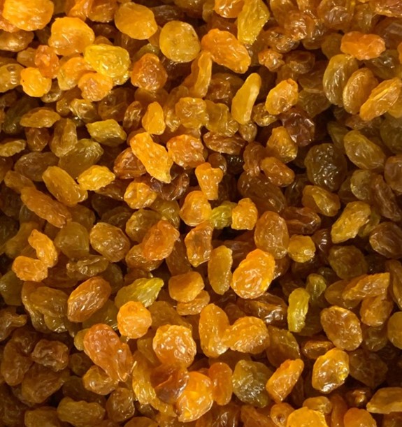 A uva passa branca sem semente é uma fruta desidratada produzida a partir de uvas claras (geralmente da variedade Thompson), que passam por um processo de secagem natural ou controlada. Ela possui sabor doce, cor dourada/amarelada e textura macia, sendo amplamente utilizada na culinária e como lanche saudável.